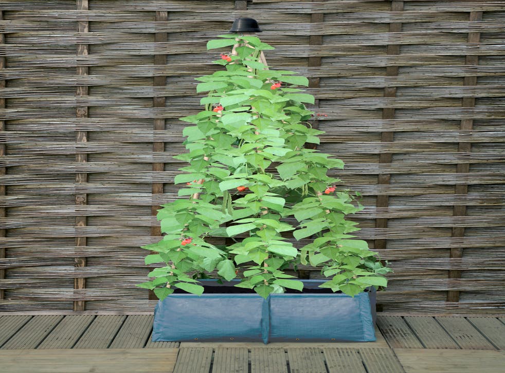 “Grow vertically in a small space, adding bamboo trellises or canes into the grow bag, growing peas, sweet peas and ornamental climbers as well as French and runner beans. You’d only need as much soil as you would in a standard container, but the grow bag will be much lighter.”