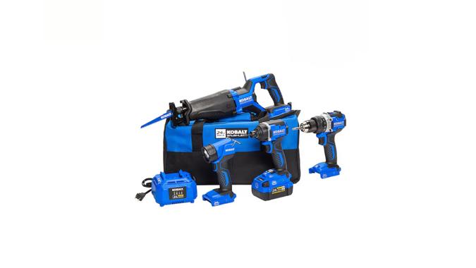 This toolkit comes with a half-inch drill, quarter-inch impact driver, reciprocating saw, saw blade, battery, charger, LED flashlight and soft storage bag. It has the four 24-volt tools you need for a home improvement project and they are all wireless, so you don’t have to worry about finding a power source.