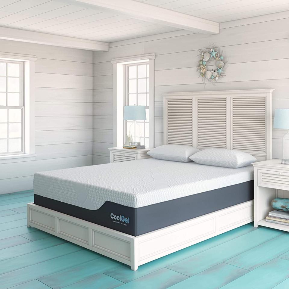 This 14-inch mattress combines pressure-relieving memory foam and cool gel memory foam to relieve back pain and help you get a better night’s sleep. The memory foam reshapes itself to contour to your body, reducing motion transfer at the same time. And as a bonus, when you buy the Classic Brands CoolGel mattress on Amazon, you also get two free shredded memory foam pillows.