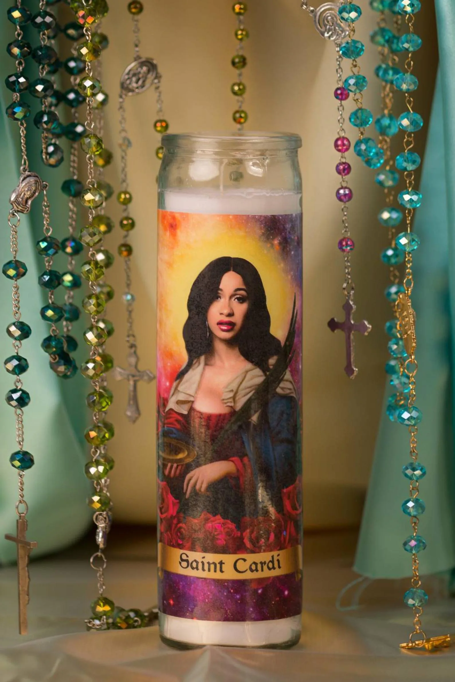 I spotted similar pop culture prayer candles at a cafe in Seattle I visited recently and havent been able to stop thinking about them. I think theyre great stocking stuffers and fun small gifts for friends and officemates. The offerings range from Saint Lizzo and Saint Cardi to Saint Antoni and Saint JVN.