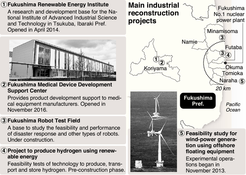 The national government is undertaking a project called the Fukushima innovation coast plan, which seeks to concentrate new industries like renewable energy in the prefecture's coastal areas.