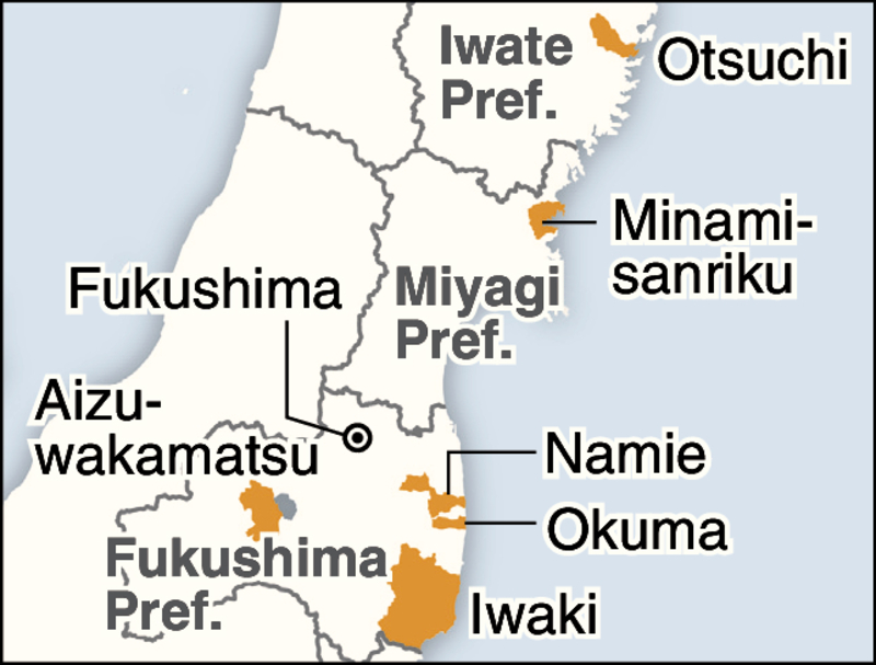 In the case of Okuma in the prefecture, where an evacuation order remains in place across the whole town, the town government relocated its offices to nearby municipalities. For example, its section in charge of reconstruction policy is in a satellite office in Aizuwakamatsu in the prefecture. Its section for welfare-related work is in a satellite office in Iwaki in the prefecture, as about 4,600 town residents live in Iwaki as evacuees.