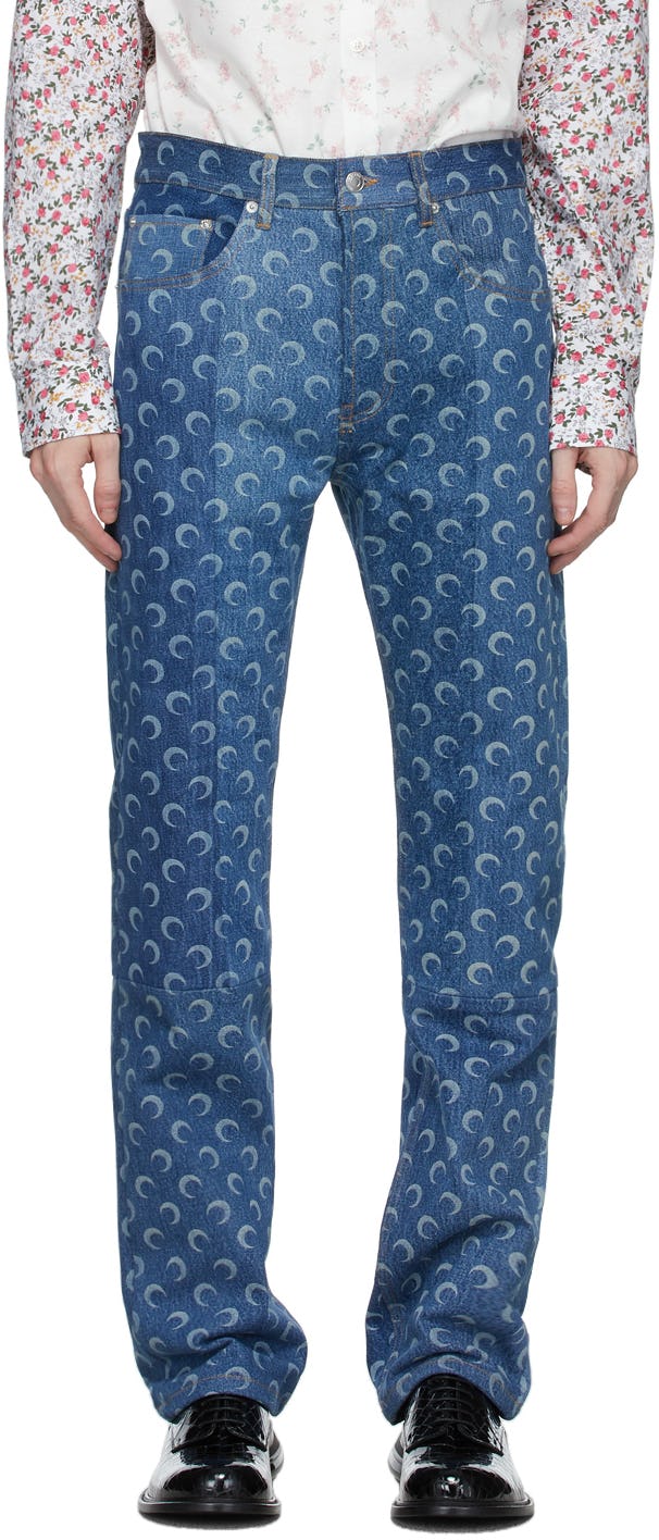 Marine Serre Blue Regenerated Denim Allover Moon Jeans ($1,050)