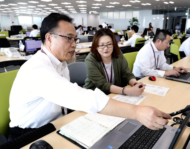 Yoshikatsu Yamaguchi, who became the first person to benefit from this new system at the life insurer, was promoted to a section chief in charge of information technology development promotion, a higher position than what he had assumed until his retirement age, and continues to instruct younger people.