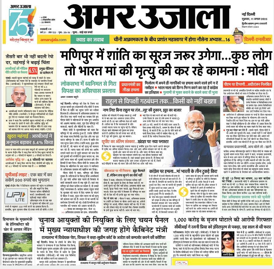 अमर उजाला ने लिखा कि मणिपुर को देश के जिगर का टुकड़ा बताते हुए प्रधानमंत्री नरेंद्र मोदी ने राज्य में फिर से शांति का सूरज उगने का भरोसा दिलाया है. लोकसभा में अविश्वास प्रस्ताव पर तीन दिन तक चली चर्चा का जवाब देते हुए पीएम मोदी ने महिलाओं के साथ हुए अपराध को अक्षम्य बताया. कहा-पूरा देश मणिपुर की माताओं, बहनों और बेटियों के साथ है.