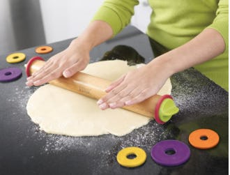 Your pizzas, pies, and cookies will be nice and uniform once you start using this clever rolling pin. It has colorful, removable discs that adjust the rolling pin to four different levels of thickness, ensuring your dough turns out evenly. This handy rolling pin also has measurements etched in the wood so you can get your baking done to exact specifications.