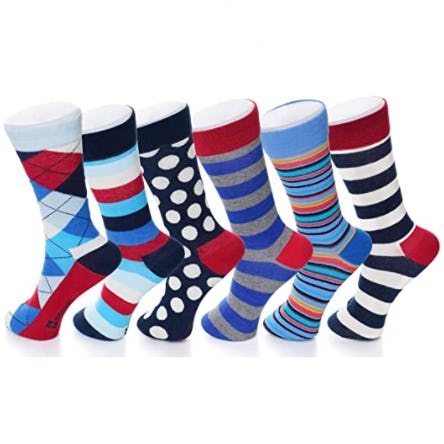 Fun dress socks like these are a great way to jazz up an otherwise ordinary outfit. This pack of six comes with different colored and patterned pairs that are not only stylish but comfortable and breathable, too. There’s eight different packs to choose from, so there’s definitely a combo of colors and patterns to get you through the work week.
