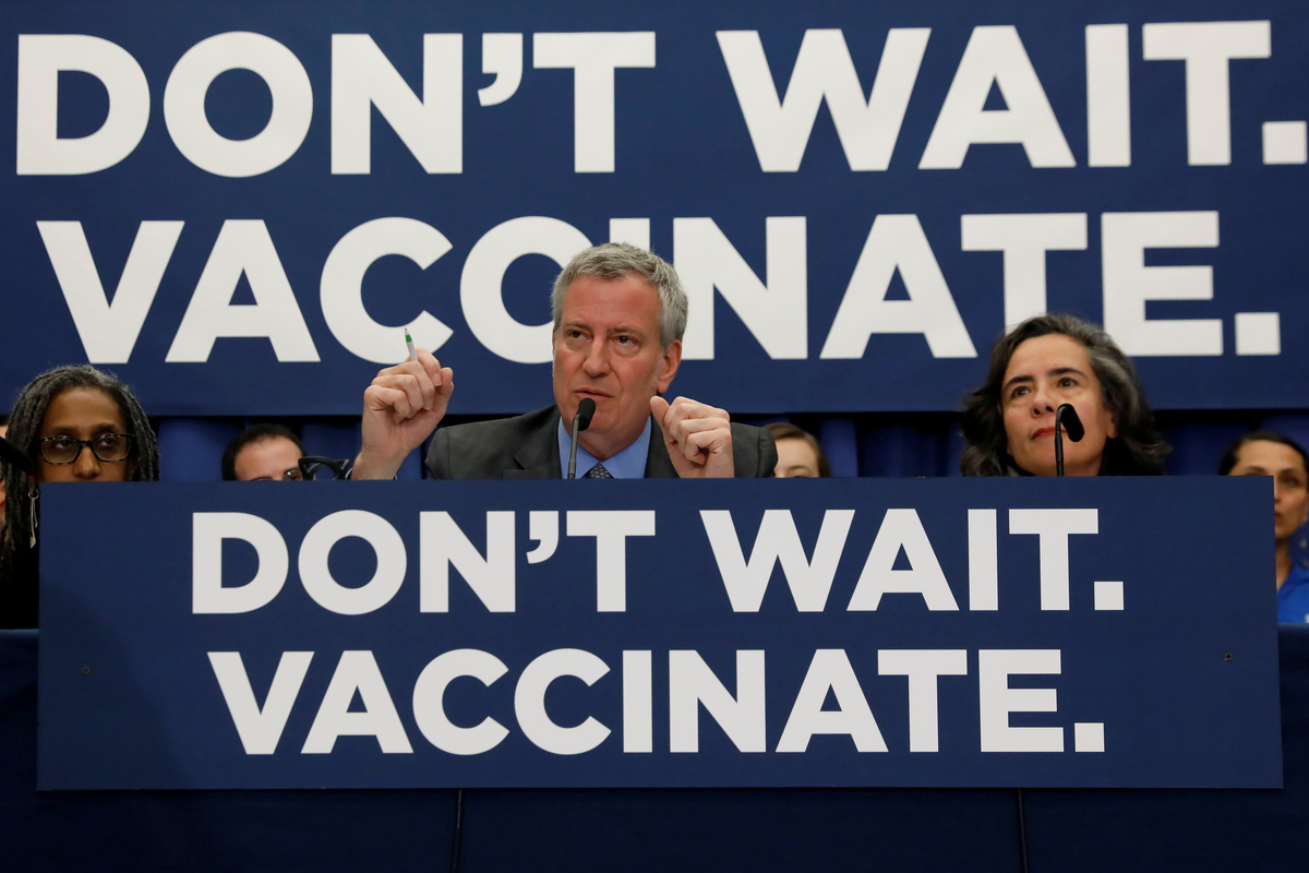 State and local officials in recent weeks have looked at new ways to fight the outbreak. In New York City, where some 423 cases have been recorded, Mayor Bill de Blasio last month issued a mandatory vaccination order for Brooklyn's Williamsburg neighborhood and other communities hard-hit by the disease.