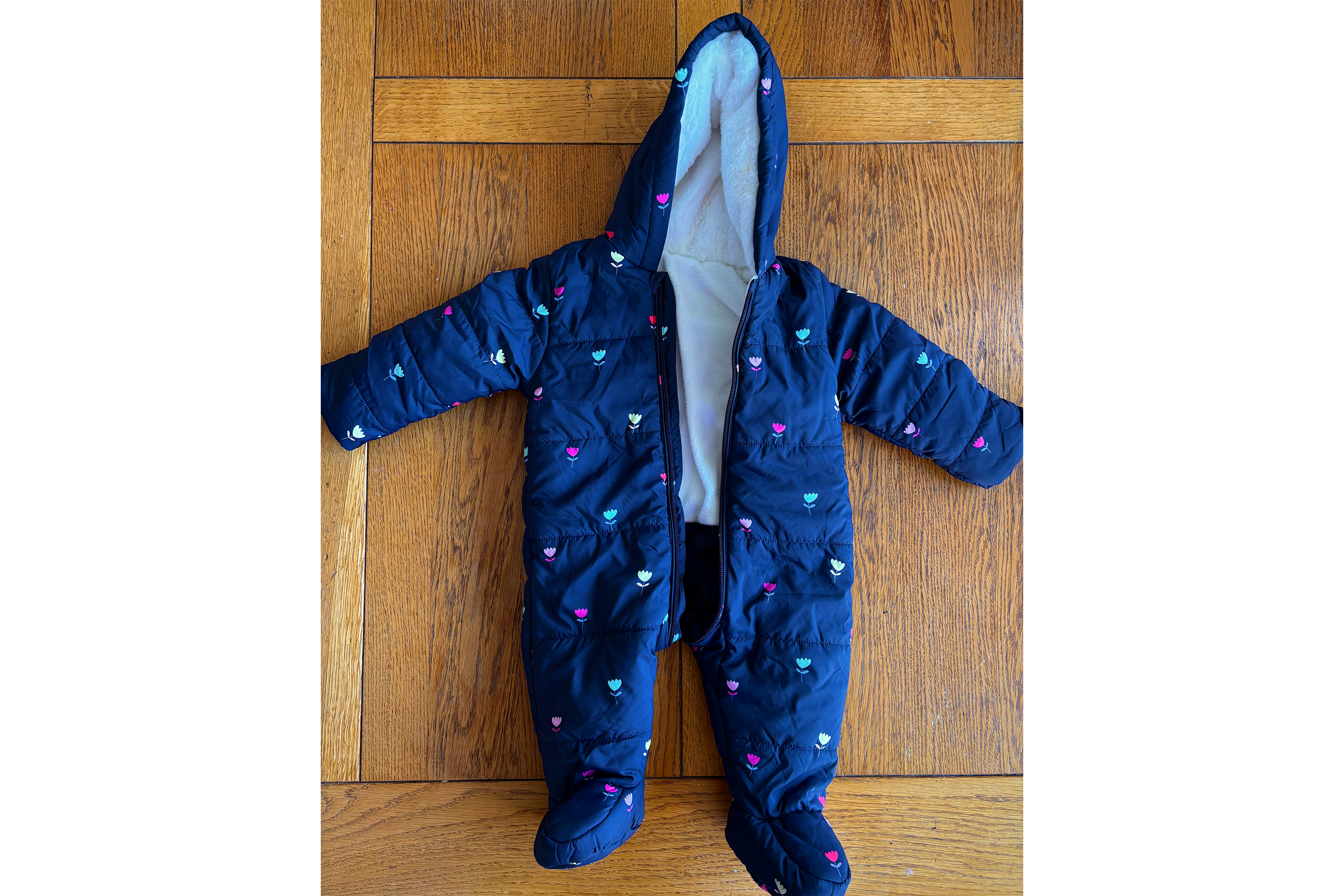 With its super-soft fleece lining and quilted exterior, Marks & Spencer’s snowsuit instantly struck me as one of the cosiest options we tested. The popper-on mittens are a clever touch, meaning they’re hard to lose and easy for adults to remove. Starting at a 0-3 months size, it’s ideal for newborns in the pram or sling, yet the range is also appropriate for young toddlers too. Smaller sizes come with built-in feet for extra warmth, while the larger ones are footless so little ones can comfortably wear boots or trainers. It washed well and dried quickly on the line.