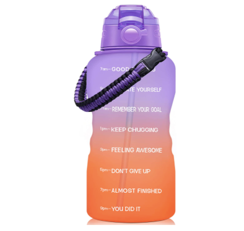 We love bottle that encourage you to keep going, and this is a far more portable option for those on the go. It’s affordable, BPA free, and it comes with a convenient handle and straw for easy sipping.