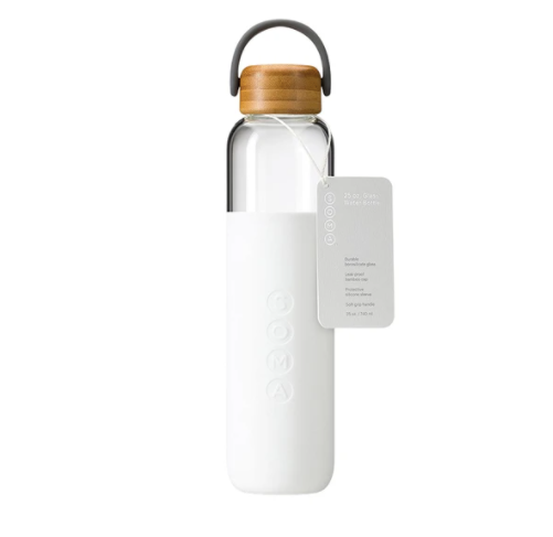 Reusable bottles are better than single use plastic for a plethora of reasons: They don’t end up in the trash after you guzzle them, they often hold more water than a standard bottle that you’d grab at a convenience store, they save you money in a very short amount of time of using them, and many of them are beautiful (as you’ll see below) thus making them a great accessory.