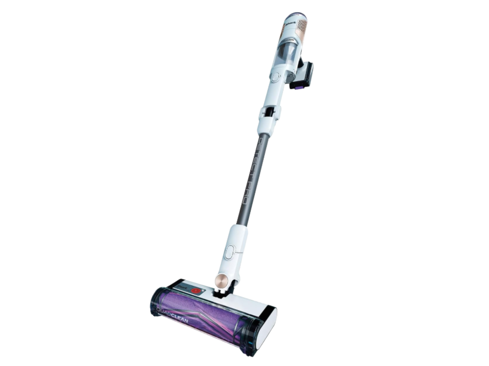 I liked how smoothly this vacuum transitioned between surfaces, as the brush-roll automatically adjusted when moving from carpet to hard floors, and the performance on both was consistently strong. Anti-hair-wrap tech kept the rollers clear, and the bright LED display made it easy to monitor battery life and suction level. It was noticeably easier to manoeuvre than the heavier powerpro pet cordless model (also included in this roundup), too – especially around furniture and stairs.