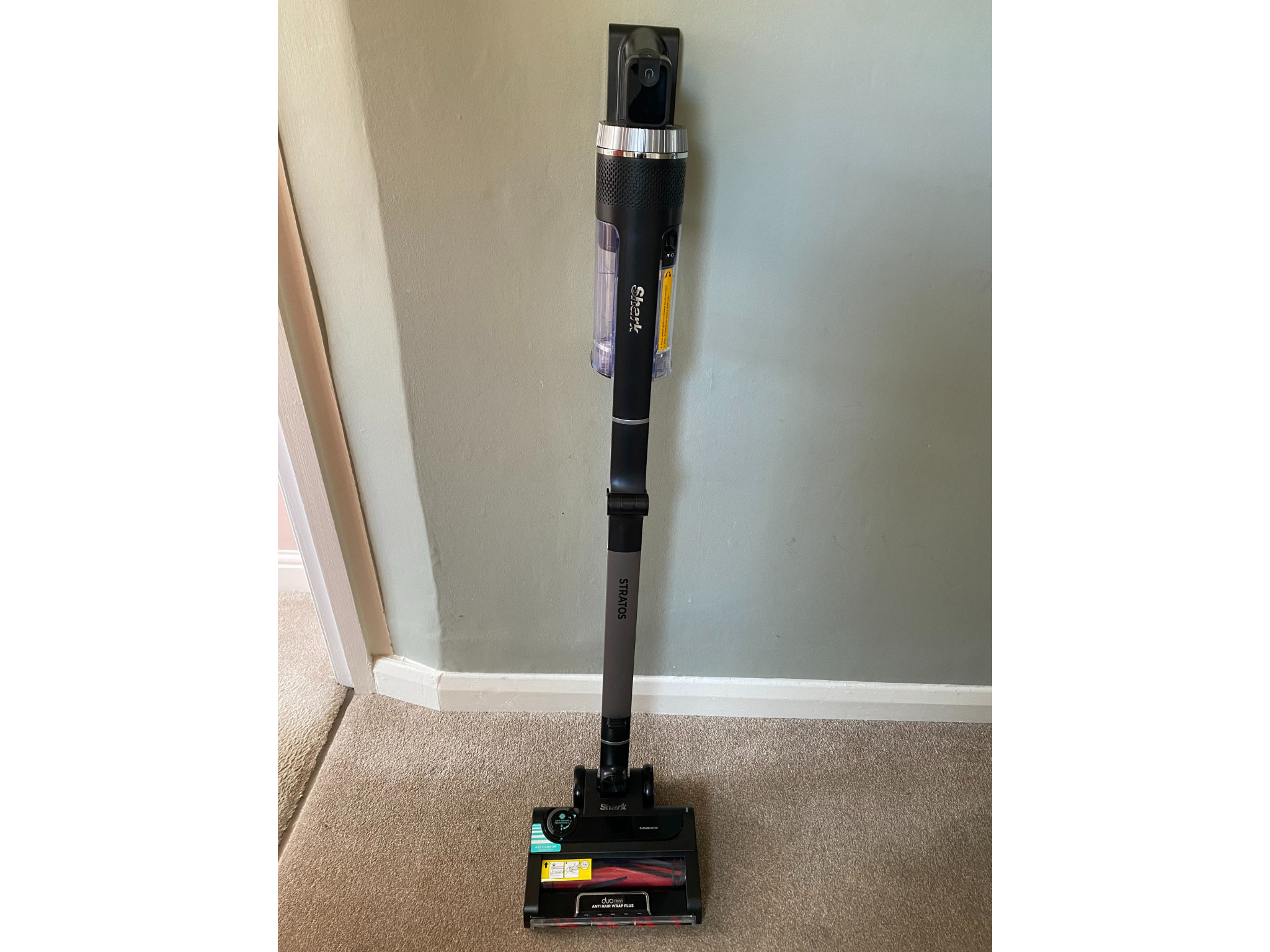 Throughout testing, I didn’t notice a single dip in suction, either. The dual battery system offers up to 120 minutes of runtime. In real-world use, that translated to about 90 minutes on standard mode and about 45 on the high-power setting, which was still longer than any other cordless Shark I tested. Another standout feature is the folding wand, which collapses neatly for compact, freestanding storage. The only drawback? It’s also the most expensive model in this lineup.