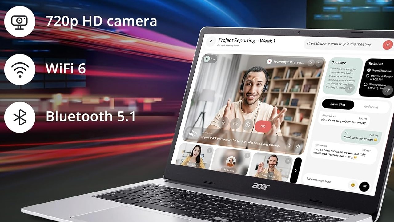 Powered by an Intel Celeron N4500 processor, it runs on Chrome OS and offers a 1920 x 1080 resolution for crisp visuals. It boots up quickly and handles multitasking well, as long as you don’t push it too hard. According to the manufacturer, the battery lasts up to 10 hours, making it a reliable option for extended use.