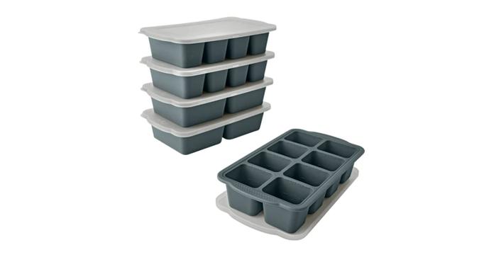 Each set comes with trays in (one) 1/2-cup, (two) 1-cup and (two) 2-cup sizes for a total of five trays with lids to store in the freezer.