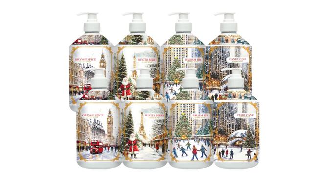 Outfit the kitchens and bathrooms in your home with these decadent Home + Body holiday hand soaps.