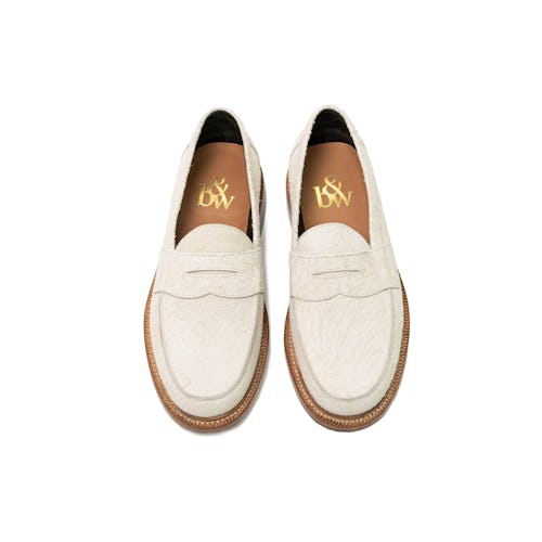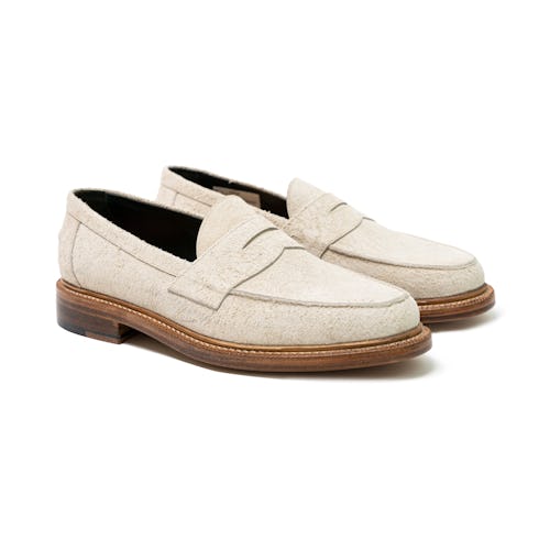 Penny loafers are becoming cool again thanks to the Brooklyn-based brand churning them out with dashing prints and in the finest materials. The suede here is extra shaggy and in a champagne color that’ll go with nearly everything.