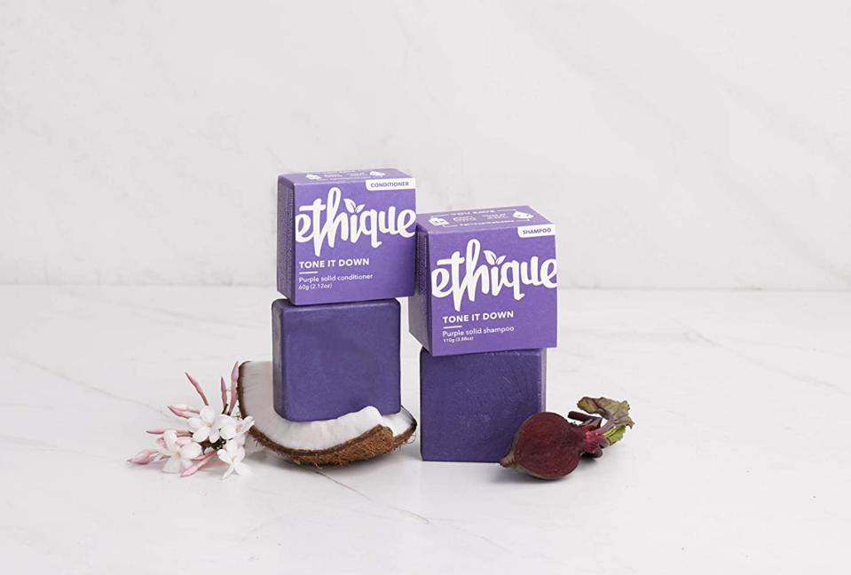 For those looking to minimize frizz, brassiness and plastic waste, consider this purple shampoo bar from Ethique. The Amazon bestseller is wrapped in compostable packaging and infused with babassu and jasmine oil to give hair shine and body, as wel as beetroot extract to improve hair’s luminosity.