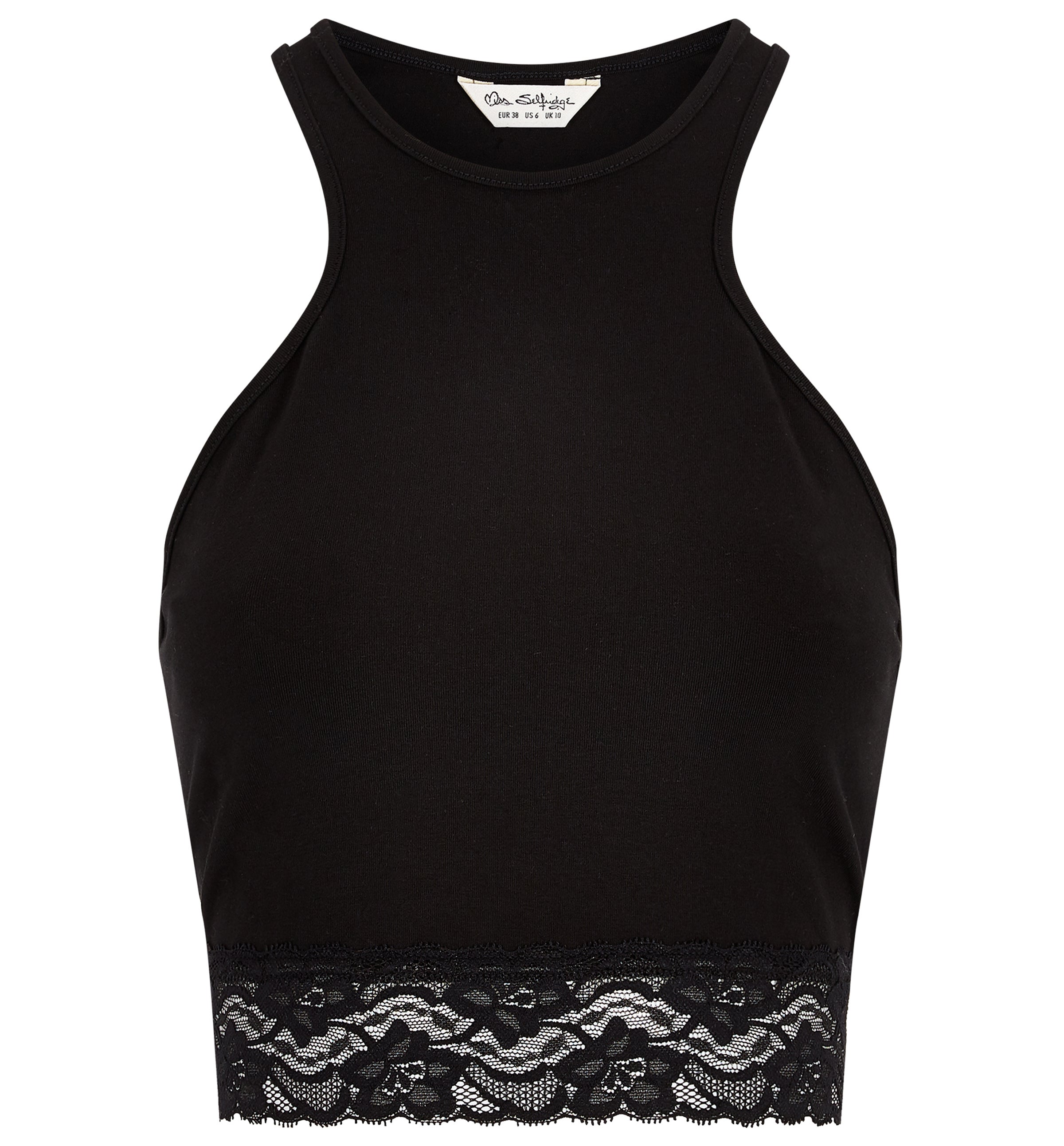 Miss Selfridge Lace Hem 90s Neck Crop Top in Black, £12, ASOS