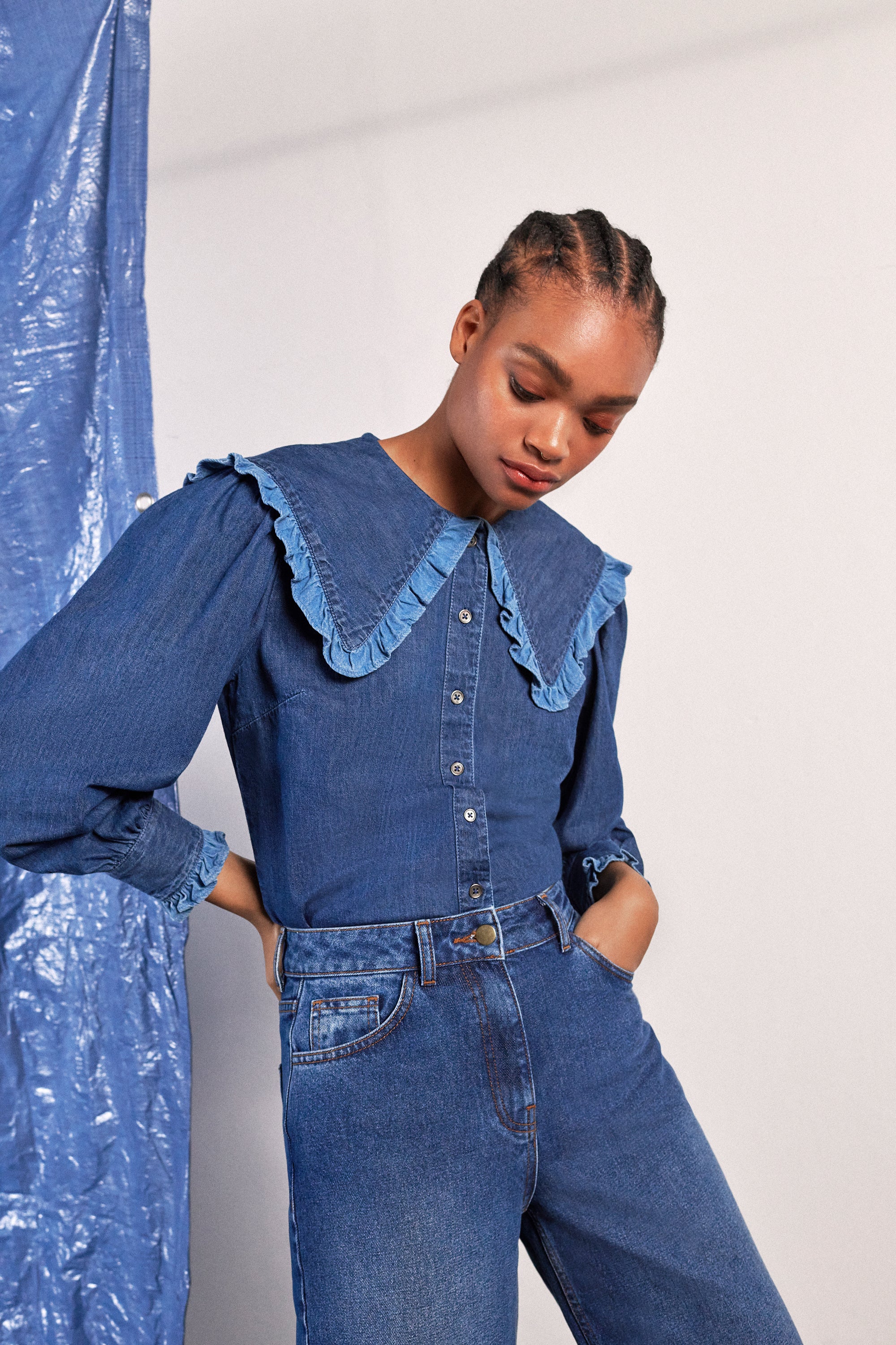 Straight-leg and mom jeans are top of the denim agenda, as well big-collared shirts and pinafore style dresses.
