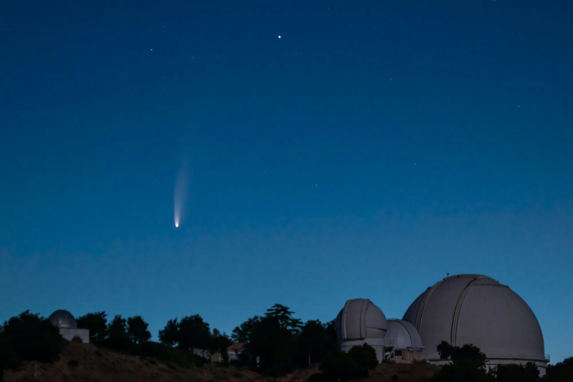 The Lick Observatory's staff astronomer Elinor Gates captured this image of NEOWISE soaring in the northeastern sky before dawn on July 7.