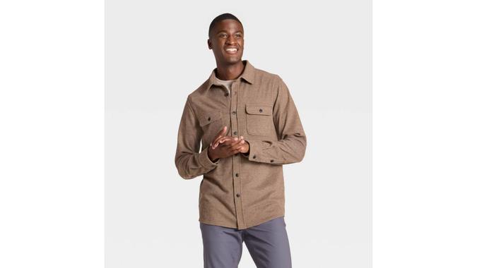 Made from jacquard knit, this Goodfellow & Co. comfort soft shirt radiates casual elegance. It’s offered in six warm colors, so you might want to buy a few of these soft and cozy button-downs this fall.
