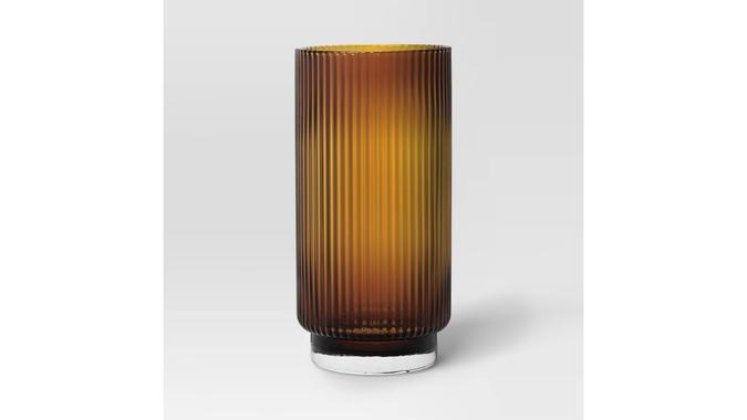 Elevate your fall drinkware with these 20-ounce Threshold ribbed tall tumblers. Made from glass, these dishwasher-friendly tumblers are available in amber and green.
