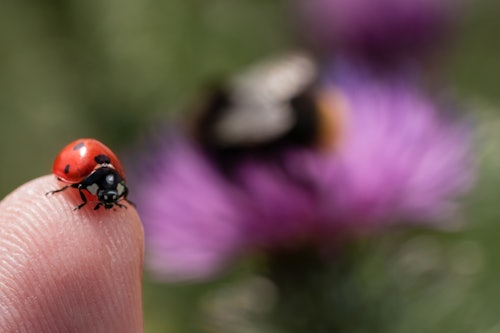 Instead of using chemicals, consider learning techniques that can encourage plant health through natural means such as biological control — using ladybugs to eat aphids, for example — and choosing plants that are best suited for the local climate.