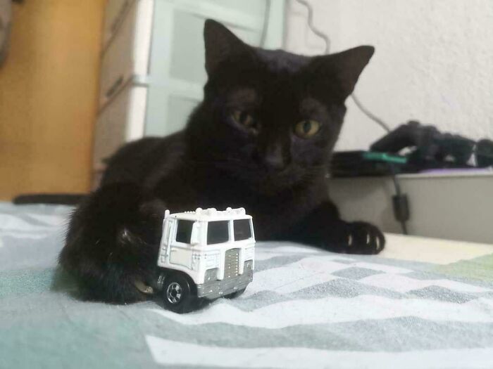 I Found A Stray Cat Who Was Very Weak And Hungry. I Brought Him Home And Took Care Of Him. After Just Four Days Of Good Food, Warmth, And Rest, He’s Now Thriving, Playing With His Favorite Toy Truck, Batting It Around With His Paws. Should I Adopt Him Or Bring Him To The Rescue Center?