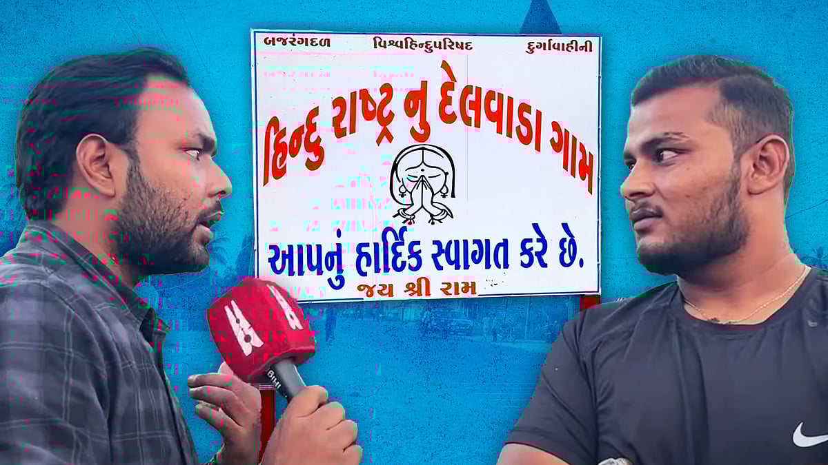 इस बोर्ड को लगवाया है, 23 साल के जयदीप भाया. इन्होंने 10वीं तक पढ़ाई करने के बाद आगे की पढ़ाई छोड़ दी. जयदीप के पिता की देलवाड़ा में चाय-नमकीन की दुकान है. बजरंग दल से जुड़े जयदीप बताते हैं, ‘‘यह बोर्ड कई महीनों से लगा हुआ है. हम सबने मिलकर लगाया है.’’ बोर्ड पर गुजराती में क्या लिखा है इस पर वे बताते हैं, ‘‘हिंदू राष्ट्र का यह गांव आपका हार्दिक स्वागत कर रहा है. हमने अपने गांव को हिंदू राष्ट्र का घोषित कर दिया है.’’
