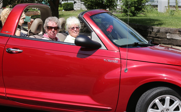 Foley had read Shaffer's reminiscence about her first car, a 1949 red Plymouth convertible, in the Beacon Journal back in November. "Maybe my bucket list will include a loan for a day, a ride around town in a red convertible for my 84th birthday," Shaffer wrote.