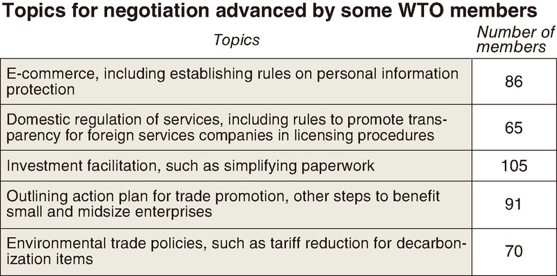 In the field of e-commerce, about 20 items are viewed as still to be negotiated, including customs duties on electronic transmissions, with the aim of reaching general agreement by the end of 2022.
