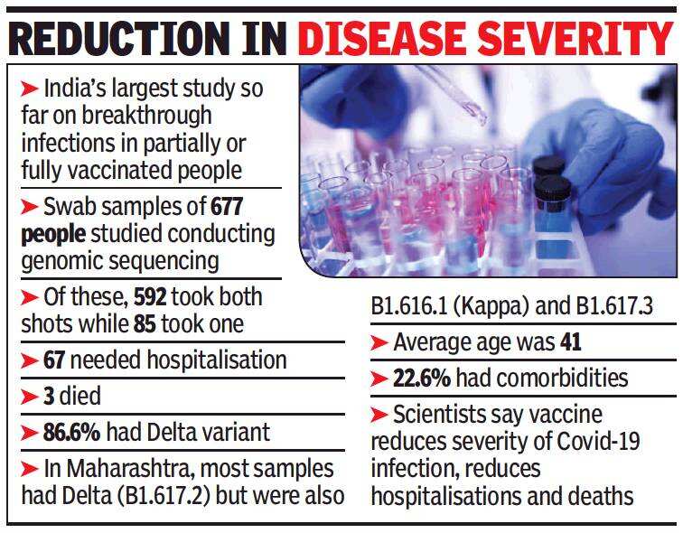 MUMBAI/PUNE: In the largest study done so far in India to understand why people got Covid-19 despite taking one or two vaccine shots, scientists from Pune-based National Institute of Virology (NIV) found a simple answer: B.1.617.2 (Delta variant).