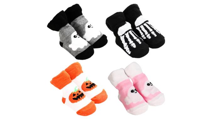 We did some digging online and found most baby booties cost as much as $10 at big-box retailers and clothing stores. Each pair of Dollar Tree booties comes with grippers, and is available in pumpkin, ghost and skeleton designs.