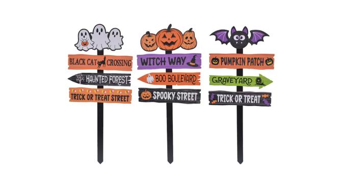 Outfit your front and back yard with decorative yard stake signs. At just $1.50 each, you can comfortably fit buying several signs into your budget to ensure your house gets plenty of visits from neighborhood trick-or-treaters.