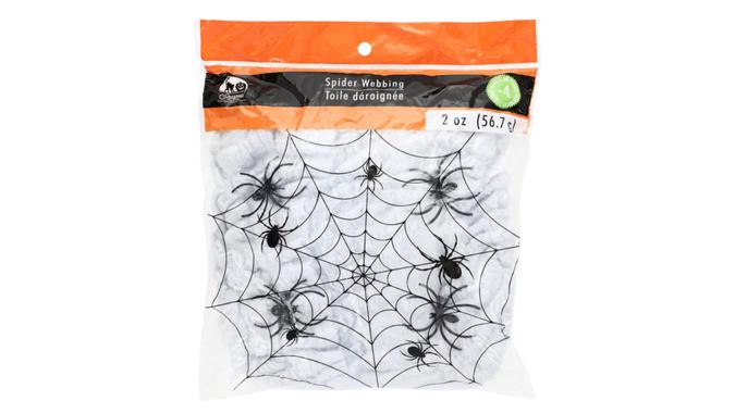 Dollar Tree has a few spider webs to shop this Halloween season, but we really like the spider web with plastic spiders set. Each two-ounce bag is a little heftier than the 1.5-ounce bags, giving you extra bang for your buck in addition to the four enclosed plastic spiders.