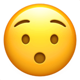 This open eye, open mouth, raised eyebrow emoji is labeled the "hushed face" emoji by Unicode — meant to convey someone who has been, well, hushed. (Think: you're talking too loud, or you're saying all the wrong things and need to stop. Either works.) Of course, plenty of people assume it means surprised — but if you want to convey that emotion, perhaps you should go with the very slightly different "astonished face" emoji.