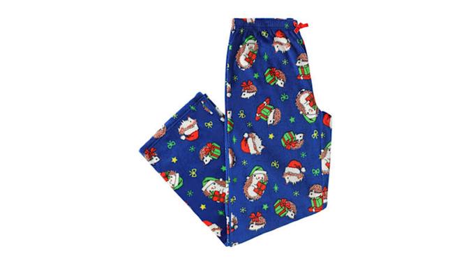 These holiday plush pants work as pajamas of just comfy attire for relaxing around the house. You can choose from several prints featuring candy canes, penguins, hot cocoa cups, Santa, Christmas trees and other familiar seasonal symbols. They’re available in sizes ranging from extra small to extra-extra large.