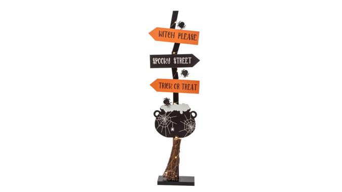 Let the neighborhood trick-or-treaters know your house has candy on hand with a Halloween-themed sign post. These decorative posts are perfect for displaying on porches or inside windows.
