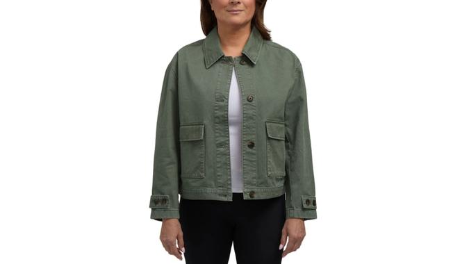Complete a simple springtime ensemble with Hunter’s button front jacket. This lightweight women’s jacket adds just enough warmth on a breezy day and features two front flap pockets. Choose from green or blue hues online only.