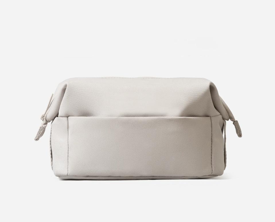 Designed with sides that fold back so you can reach inside quickly or snap down for compact travel, this hardworking pouch has five interior pockets and doubles as a dopp kit. You can also feel good about the fact that it’s made with waste-free recycled plastic bottles and environmentally-friendly dyes, making it sustainable and sleek.
