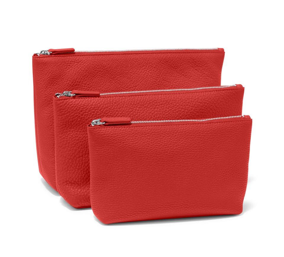 Sometimes you don’t need to carry all your essentials and sometimes you do. This set of luxe grainy leather pouches makes it simple to organize items by any system you like—whether you group by type (makeup, medicines) or needs (travel, everyday).