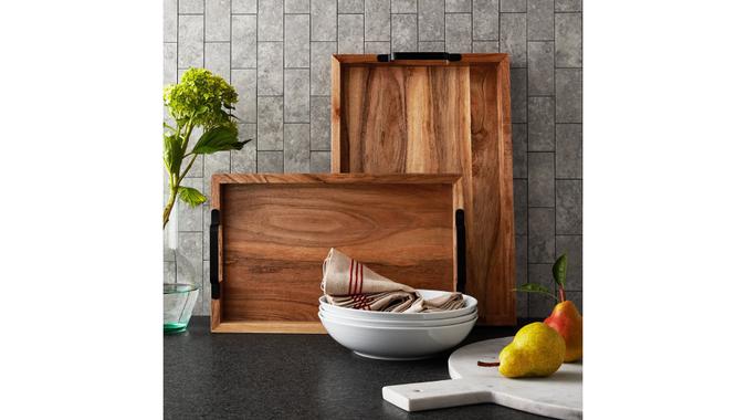 Made from acacia wood, this salad bowl comes with two matching servers that make tossing a salad a breeze. But don’t limit yourself to fresh greens. You can also use it for mixed fruits or cold pastas — perhaps plated atop your matching acacia serving trays?