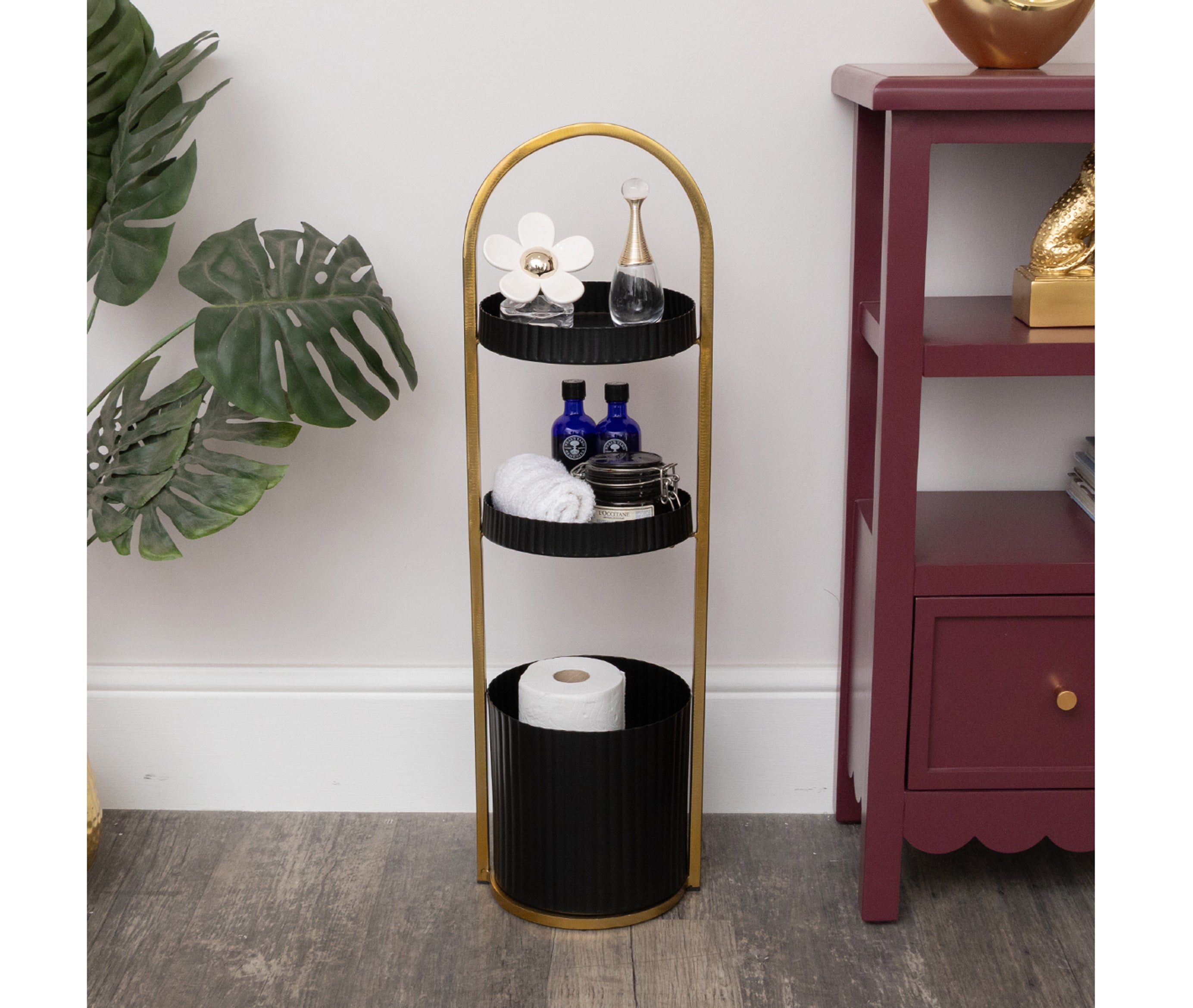 9. Gold & Black Metal 3 Tiered Storage Caddy – 25cm x 35.5cm, £49.95 (was £54.95), Melody Maison