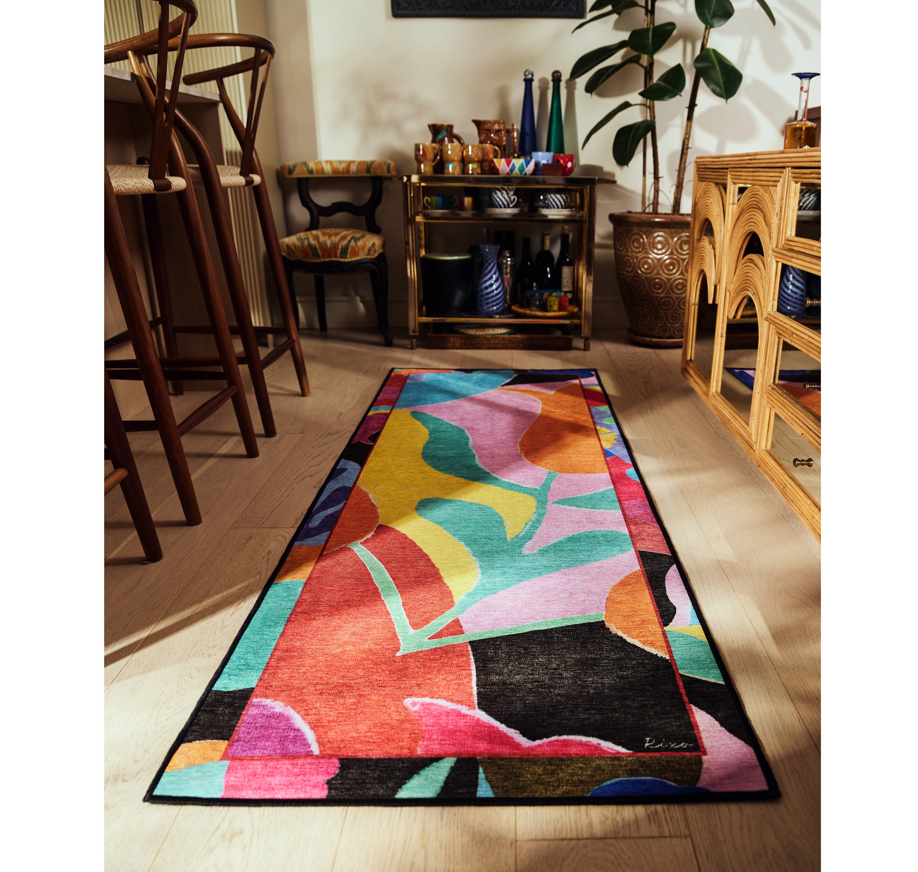A funky rug makes for an easy update – and this striking floral print imbibes thoughts of a tropical hideaway and sunny outlook.
