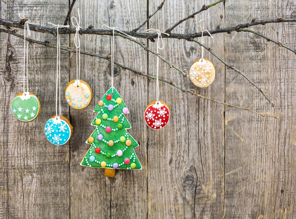 Make your own wreath with coat-hanger wire and foliage and bake edible cookies to hang on the tree. And, if you are buying tree lights get solar ones or those with LED bulbs to reduce energy use.
