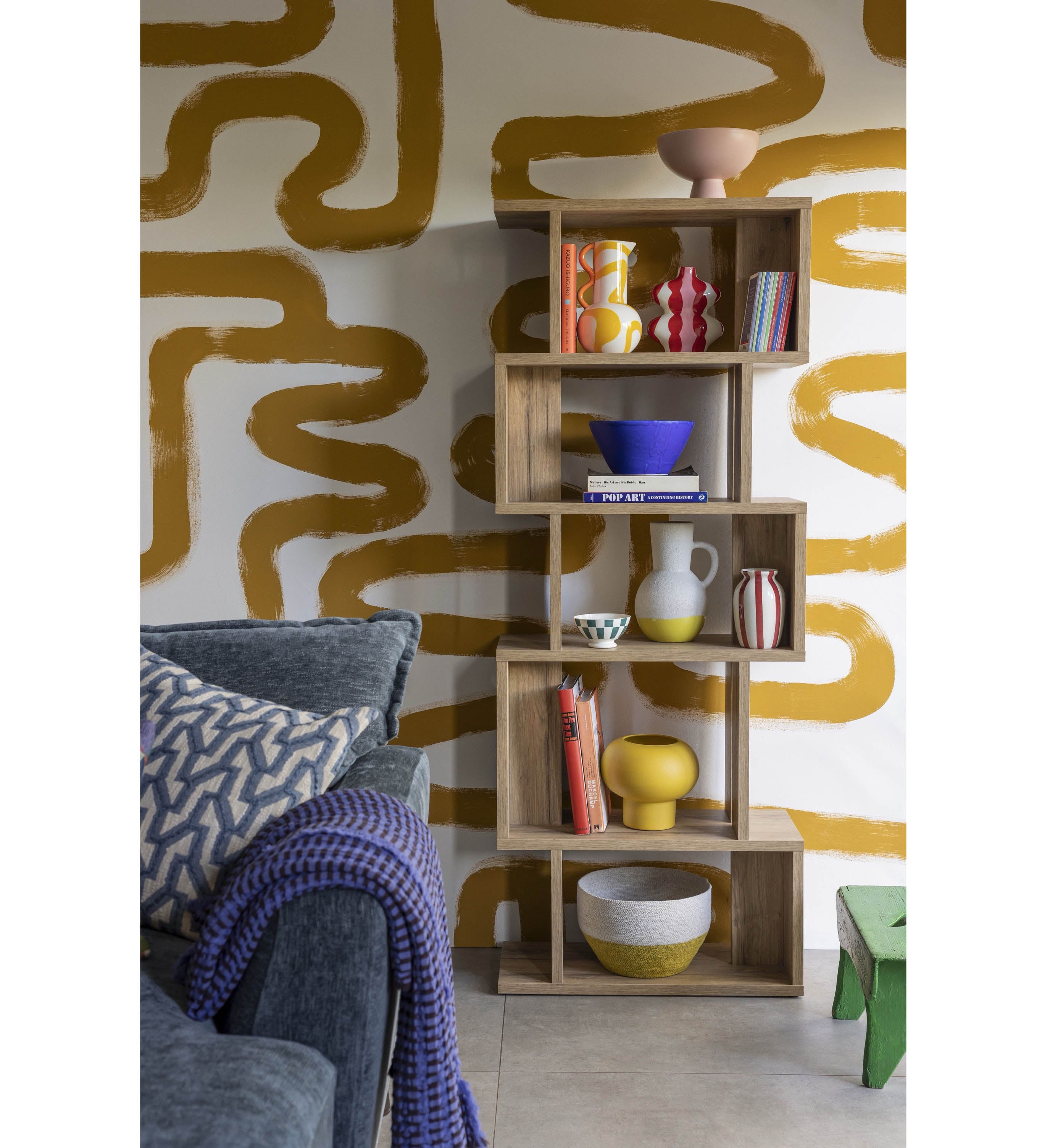 Ideal for artfully curated chinaware and colourful ornaments, this oak-effect unit with open alcoves will fit seamlessly against a feature wall… and works like a dream in contemporary interiors.