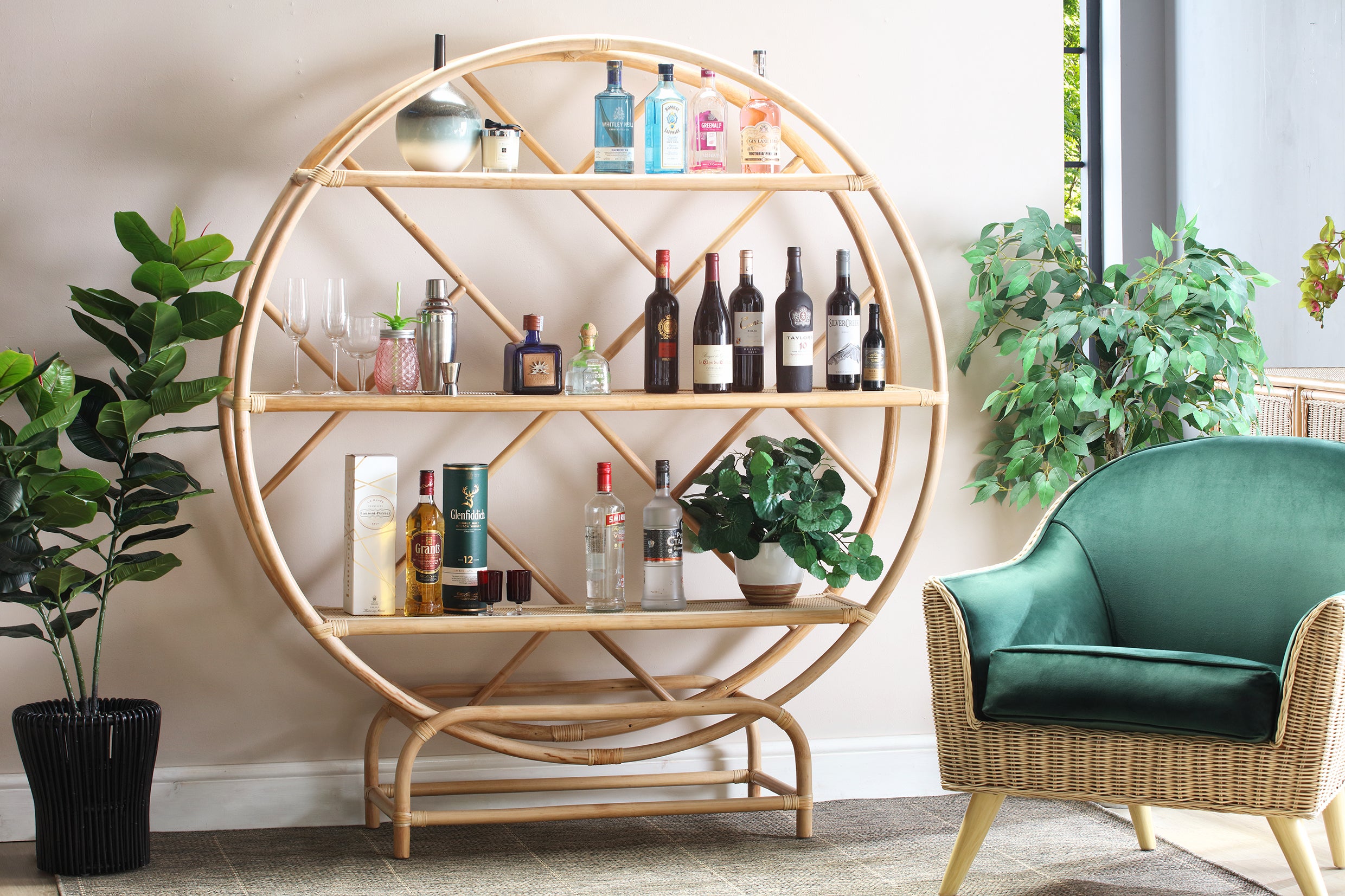 This circular frame in trendy rattan comes with three shelves to show off your favourite spirits; or anything worth seeking out and styling up. Well-supported with naturally sturdy cane feet, there’s capacity for coffee table books alongside candles and glassware.