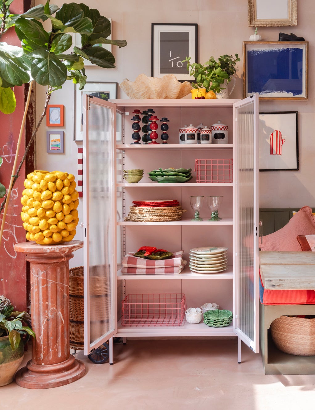 If you love to live life in colour and celebrate a ‘more is more’ aesthetic, this metal frame cabinet is tailor-made for souvenirs, mementos and keepsakes. Better still, fluted glass lockable doors mean you can safeguard against intrusion… should the situation arise. With adjustable shelves, it can be tailor-made to fit your needs.