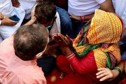 1/8:In pics: Rahul Gandhi visits 9-year-old rape victim's family in Delhi